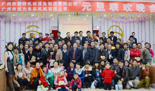 元月11日晚,廣州市國研機械設備制造有限公司大會議室裝扮一新、燈火璀璨。由廣州市健力食品機械有限公司、廣州市華輝食品機械有限公司和廣州市國研機械設備制造有限公司聯合舉辦的“慶元旦?迎新春”聯合晚會在這里隆重舉行。晚會溫馨、浪漫、快樂,優美的歌聲,迷人的舞姿,精彩的小品讓大家度過了一個開心的夜晚。
