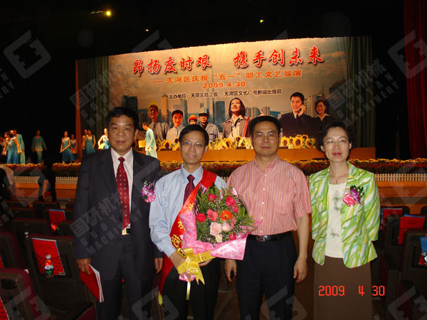 4月28日上午,廣州市委大禮堂張燈結(jié)彩、鑼鼓喧天,一派喜氣洋洋。廣州市委、市政府慶祝“五一”國(guó)際勞動(dòng)節(jié)暨勞動(dòng)模范和先進(jìn)集體表彰大會(huì)在這里舉行。廣州市國(guó)研機(jī)械設(shè)備制造有限公司市場(chǎng)部經(jīng)理劉啟剛同志作為天河區(qū)6萬多家民營(yíng)企業(yè)唯一當(dāng)選的廣州市勞動(dòng)模范出席了表彰大會(huì)。廣東省委常委廣州市委書記朱小丹、市長(zhǎng)張廣寧等省市領(lǐng)導(dǎo)親自為劉啟剛等勞動(dòng)模范頒發(fā)廣州市勞動(dòng)模范獎(jiǎng)狀和榮譽(yù)證書并合影留念。