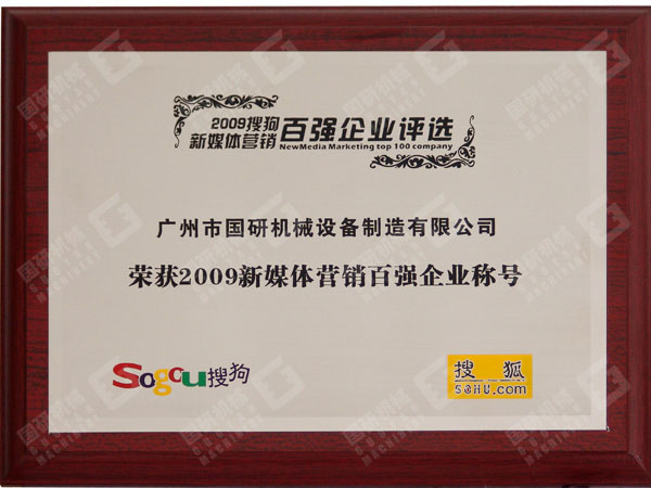 新年伊始,廣州市國研機(jī)械設(shè)備制造有限公司再度傳來喜訊:在搜狗與搜狐財(cái)經(jīng)、搜狐IT共同舉辦的“2009搜狗新媒體營銷百強(qiáng)企業(yè)評選”活動中,廣州市國研機(jī)械設(shè)備制造有限公司憑借出色的網(wǎng)絡(luò)營銷案例成功晉級,與各行業(yè)眾多一線品牌企業(yè)一同榮獲“2009新媒體營銷百強(qiáng)企業(yè)”稱號。